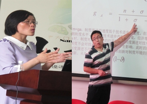 冯素坤博士和杨飞博士分别做《中央部门预算调整及其问责路径研究》和《制度与技术创新的偏向性》的主题演讲。万树副教授和顾媛媛博士作为主点评人进行了精彩点评。