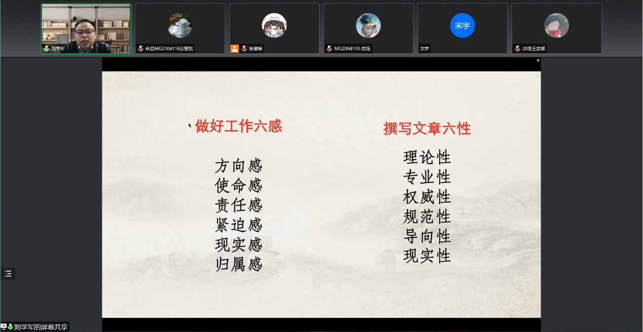 2022年4月29日上午,中国经济体制改革杂志社副总编辑、《改革内参》编辑部主任、中国改革网主编刘学军应邀作了一场关于“当前宏观经济形势及改革走势分析”的学术讲座。此次会议采用线上会议的方式举行,老澳门六合彩 全体研究生参加了此次讲座,讲座由老澳门六合彩 副院长赵军锋教授主持。