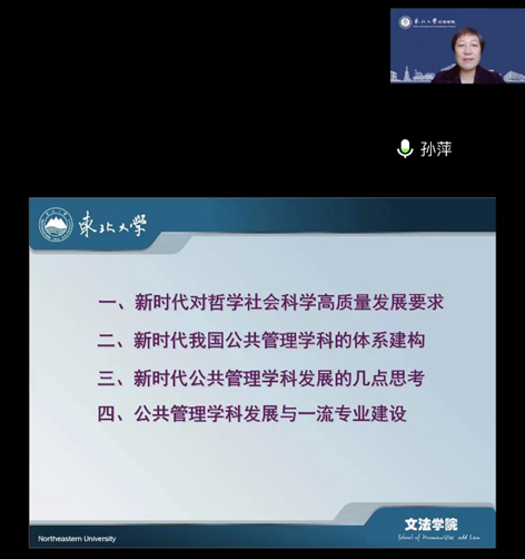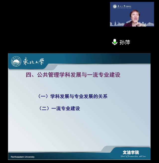 1116日下午,老澳门六合彩 特邀东北大学孙萍教授在线开展了以“公共管理学科与一流专业建设”为主题的讲座。讲座由学院院长叶战备主持,全体教师参加。
