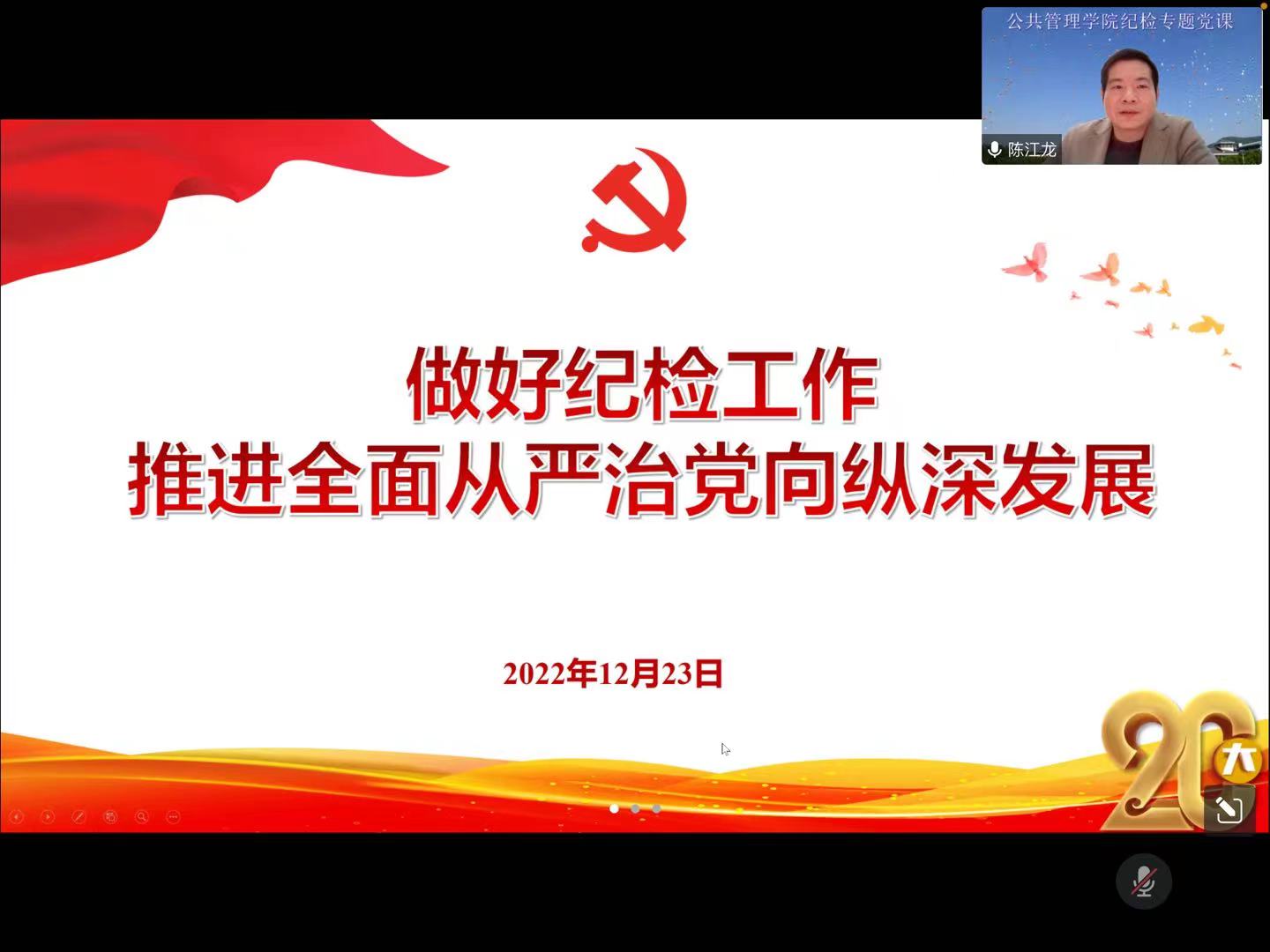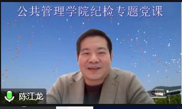 党课尾声,金晶对陈江龙的授课表示感谢,她说作为新时代公共管理人,我们从此次党课中不仅要深入学习党的二十大精神,更要学会如何将全面从严治党落实到实际的纪检工作中去,不断推动自己的工作和学习,为学校高质量发展做贡献。