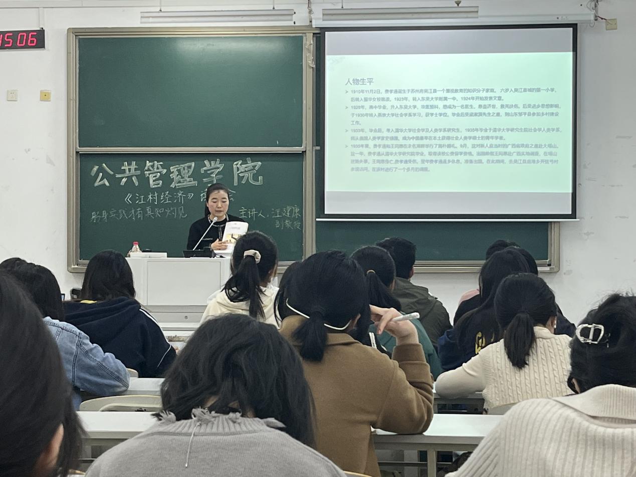 汪老师按书籍的章节为我们介绍《江村经济》一书。对开弦弓村的地理环境、村民的家庭结构、经济生产方式、财产分配与继承等进行了详细的描述,旨在通过一种人类学的描绘展现我国传统农村社会的深层结构和功能。