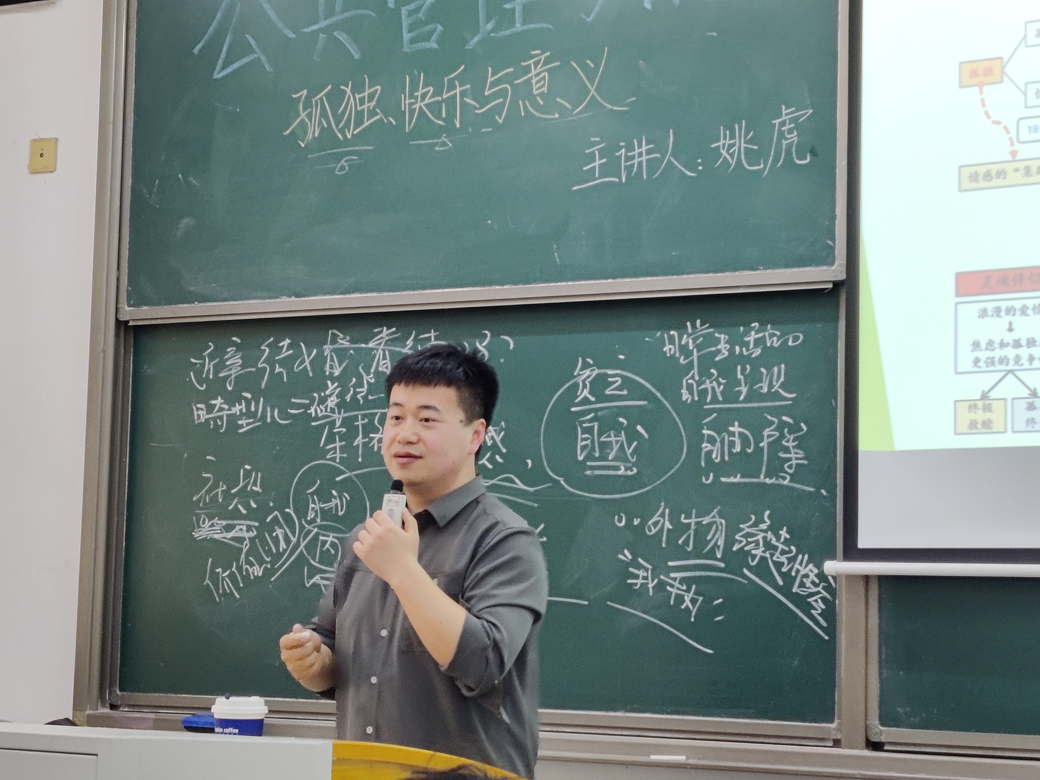 活动活动伊始,姚虎老师通过询问同学们何为“生活的意义”,引出找寻其意义、避免孤独、寻找快乐等关键词,提出了此次学术讲座的主题——“自我:追求自由且平等的状态”。姚老师着重指出:追求自由且平等的状态分为向内和向外两种方式。