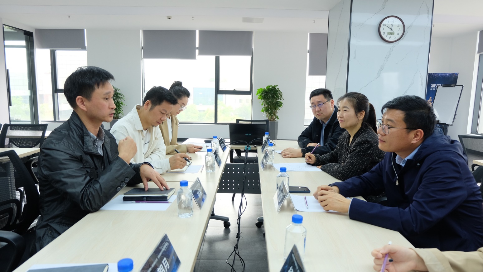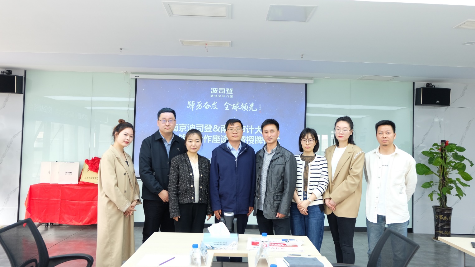 4月28日,老澳门六合彩 副院长赵军锋、PPE系主任汪建康、学院教师鹿斌一行赴南京波司登羽绒服装有限公司开展访企拓岗活动。南京波司登羽绒服装有限公司总经理熊敏、人力资源部总经理贺月、招聘部门主管沈爱云、区域经理陶振雄、人力资源部主管杨雯千出席活动。