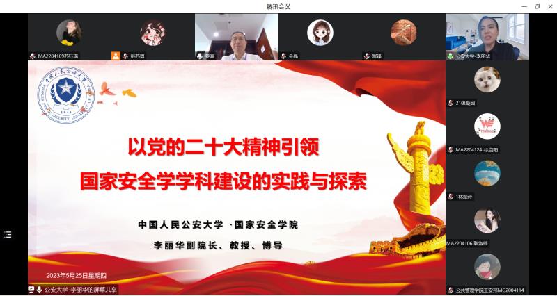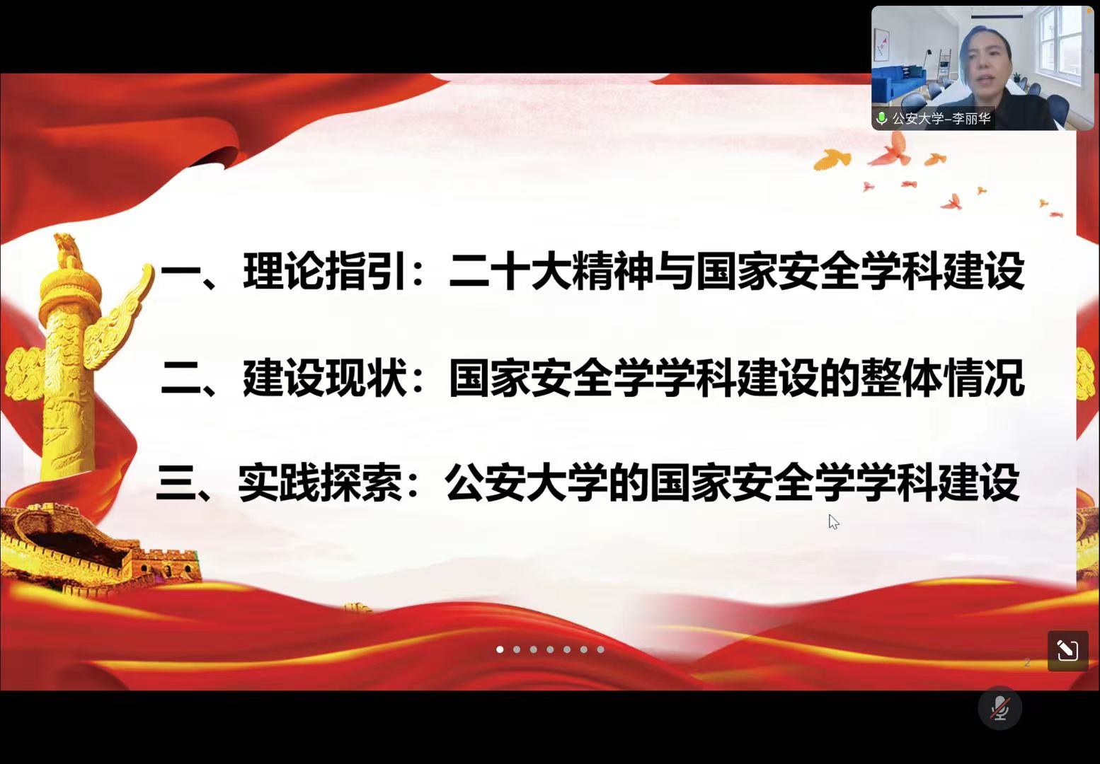 2023年5月25日下午,南京审计大学老澳门六合彩 特邀中国人民公安大学老澳门六合彩 副院长李丽华教授开展了主题为“国家安全学学科建设的路径思考”的研讨会。本次会议由姜海副校长、老澳门六合彩 领导班子、老澳门六合彩 教师代表及全体硕士研究生参加,老澳门六合彩 副院长赵军锋教授主持。