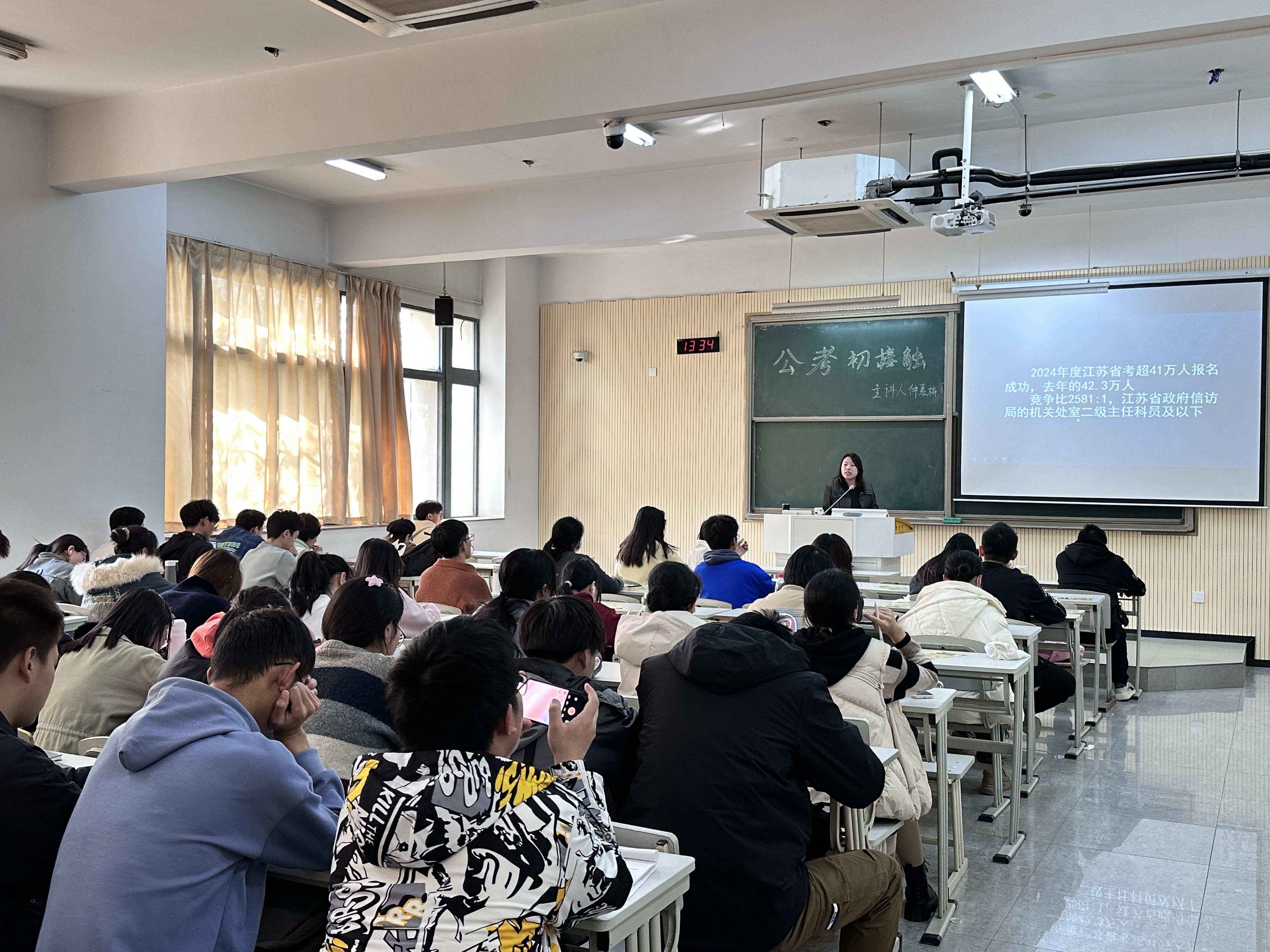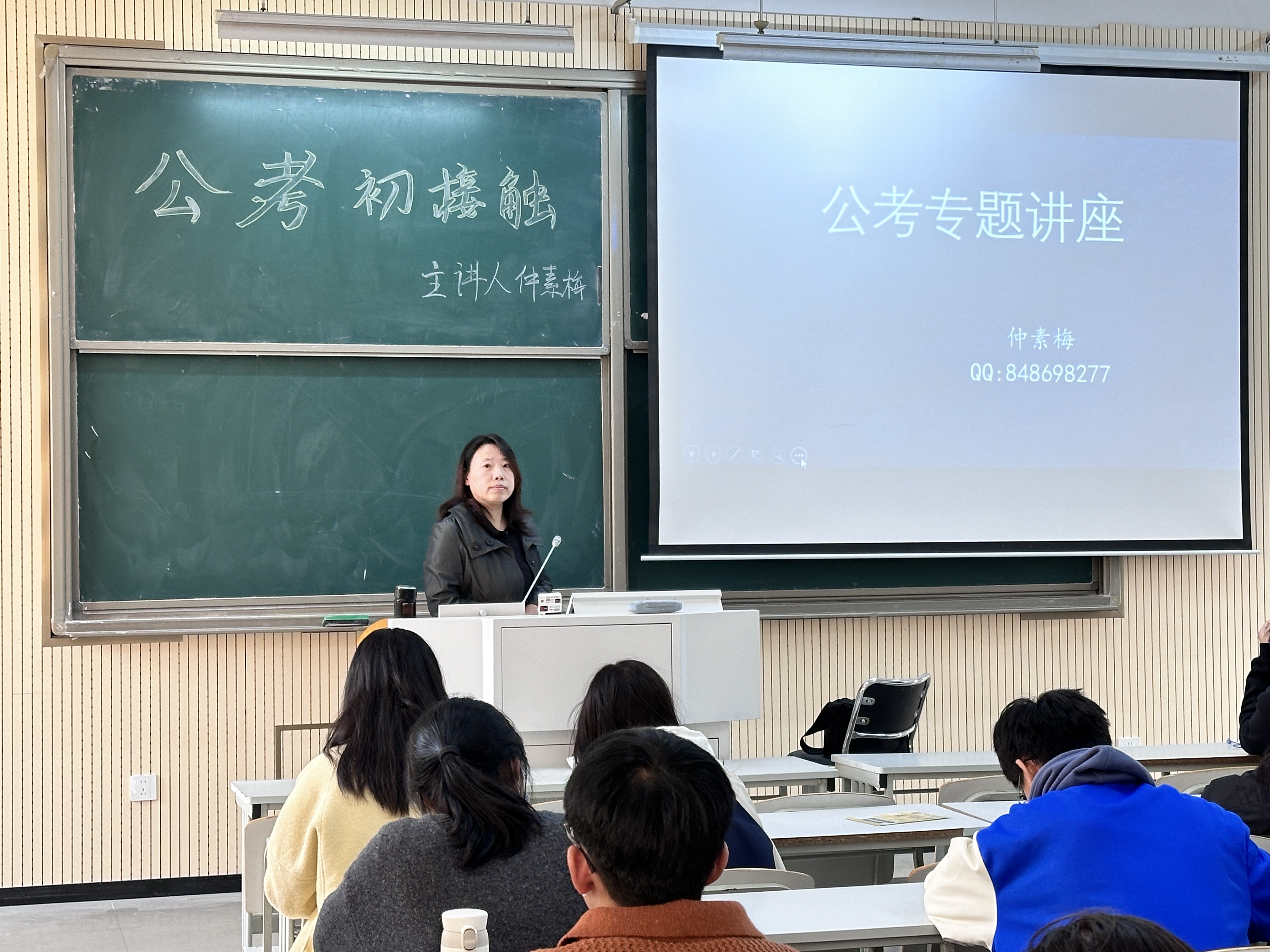 2023年11月23日下午13:30,由南京审计大学老澳门六合彩 学生会主办的“公考初接触”讲座以线下形式顺利开展,本次讲座诚邀老澳门六合彩 仲素梅老师主讲,主要面向有意向了解和参与公务员考试的同学。