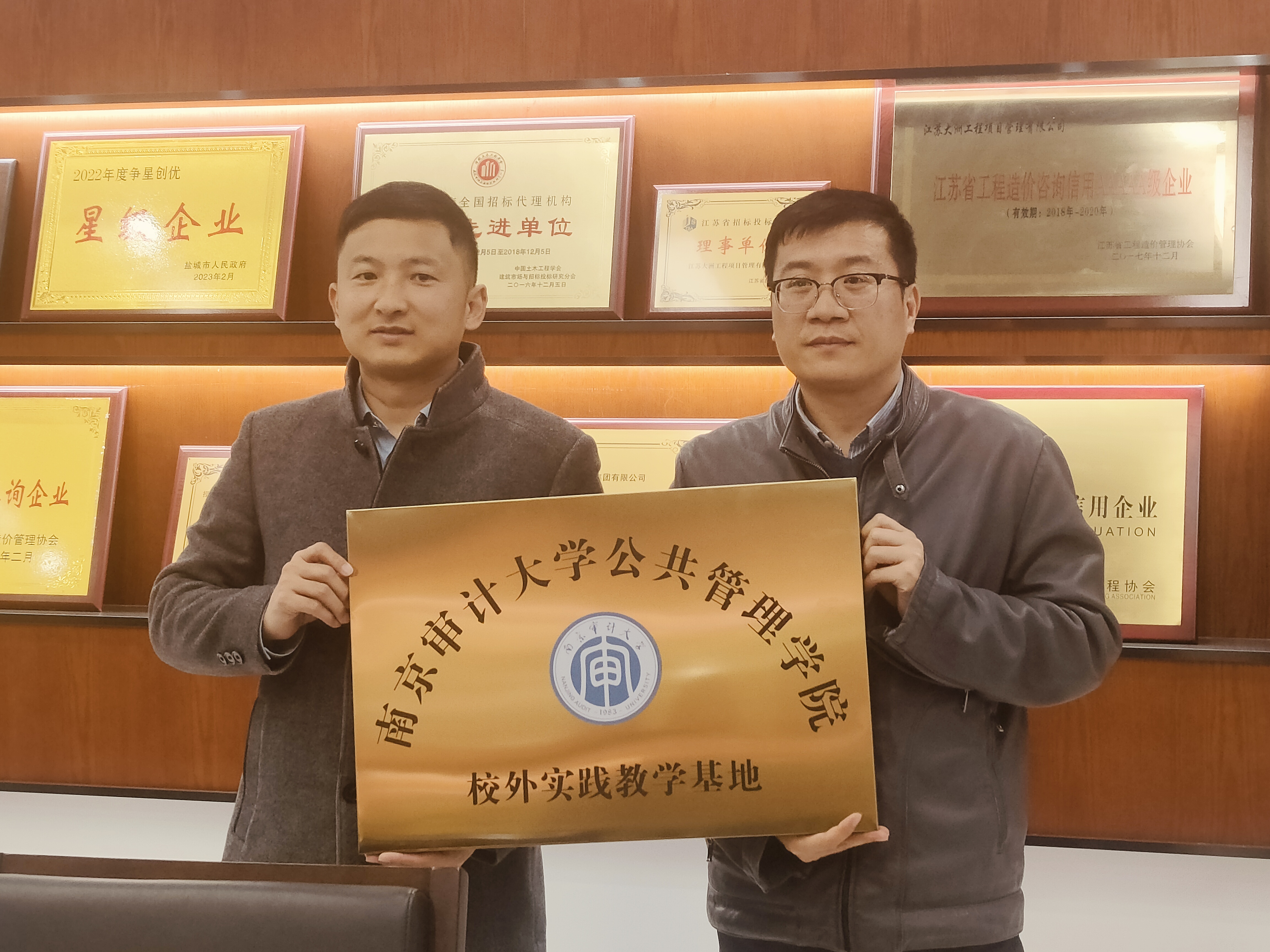 3月18日下午,南京审计大学老澳门六合彩 与大洲设计咨询集团有限公司校外实践教育基地挂牌仪式在大洲设计咨询集团有限公司南京分公司举办,老澳门六合彩 副院长(主持)赵军锋、副研究员张海涛、行政管理系副主任姚虎以及学院学生参加,大洲设计咨询集团有限公司法人代表李东升、公司代表陈相、龚玉华一同出席活动。