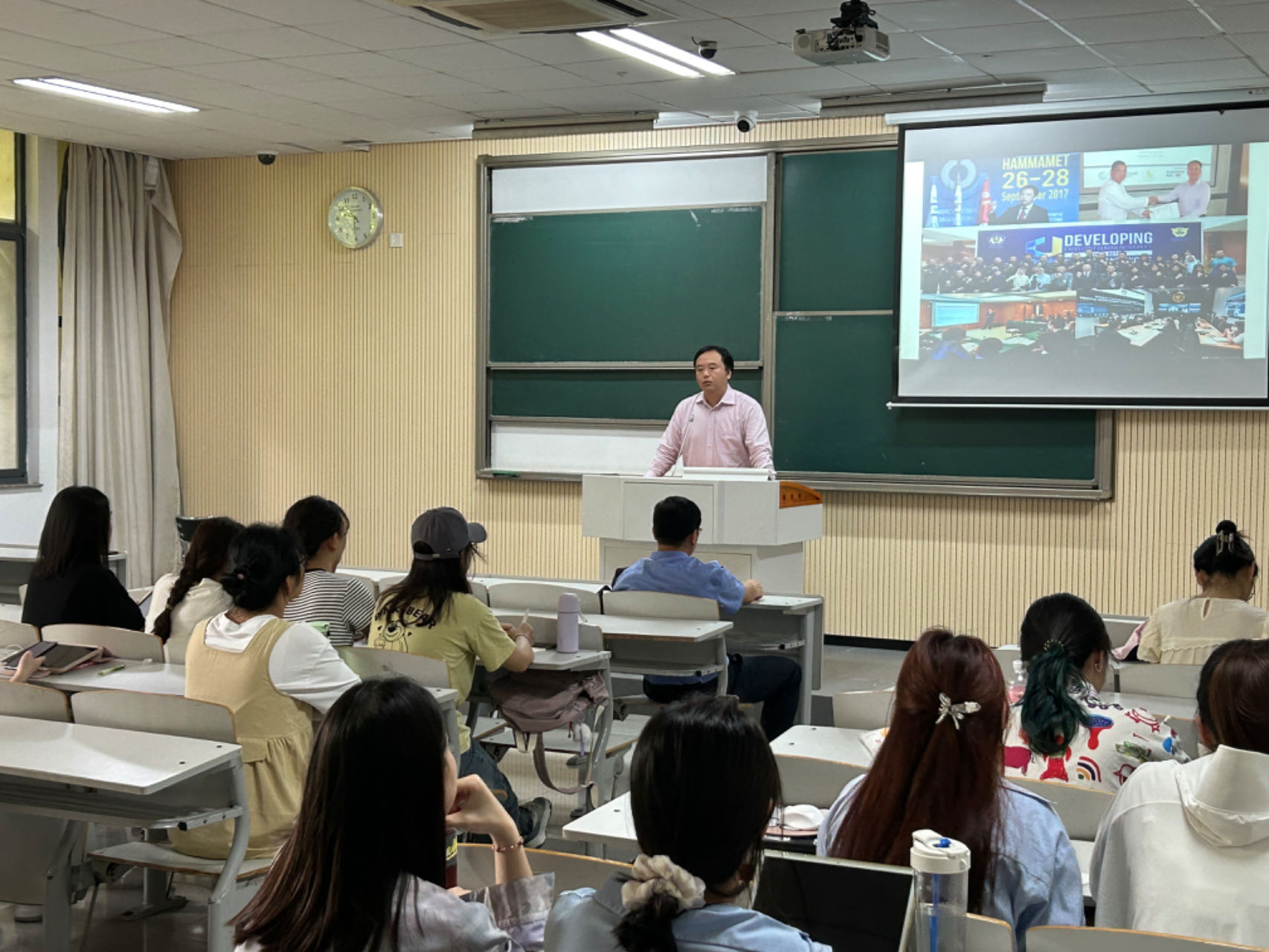 为了深入贯彻落实习近平总书记关于教育的重要论述以及在全国教育大会上的重要讲话精神,持续推进老澳门六合彩 学生学术素养,培养学生责任情怀,5月20日上午,老澳门六合彩 邀请行业专家进课堂,介绍国家安全相关理论与实践。主讲嘉宾是世界海关组织海关现代化顾问、认证专家、海关总署国际组织政策咨询专家组副组长、上海海关学院的童话博士。此次活动由老澳门六合彩 副院长(主持)赵军锋教授主持。