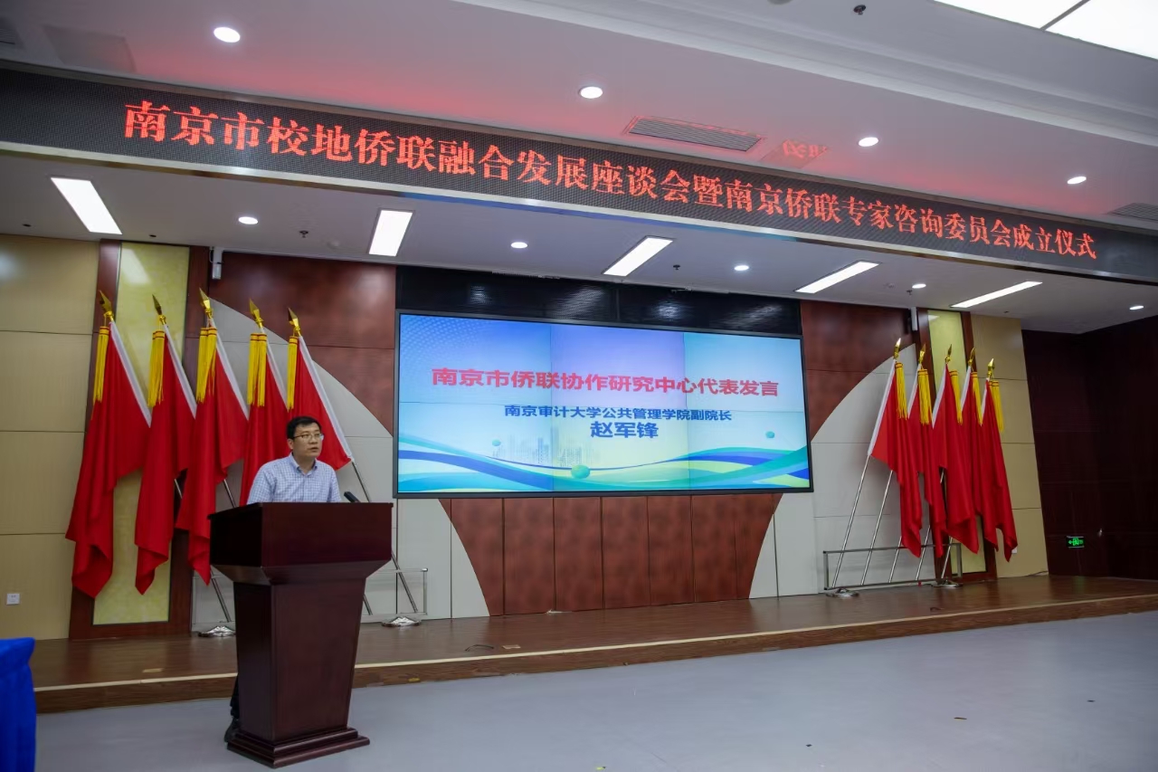 5月23日,老澳门六合彩 副院长赵军锋教授应邀参加南京市侨联举办的校地侨联融合发展座谈会。此次会议不仅见证了南京侨联专家咨询委员会的正式成立,更标志着南京审计大学老澳门六合彩 与南京市侨联在深化合作方面取得了重要进展 ——双方共同宣布成立“国家安全与公共治理协作研究中心”,该中心将致力于整合三方资源,共同推动国家安全与公共治理领域的研究与实践,为侨联、江北新区和南京市的高质量发展提供有力支持。