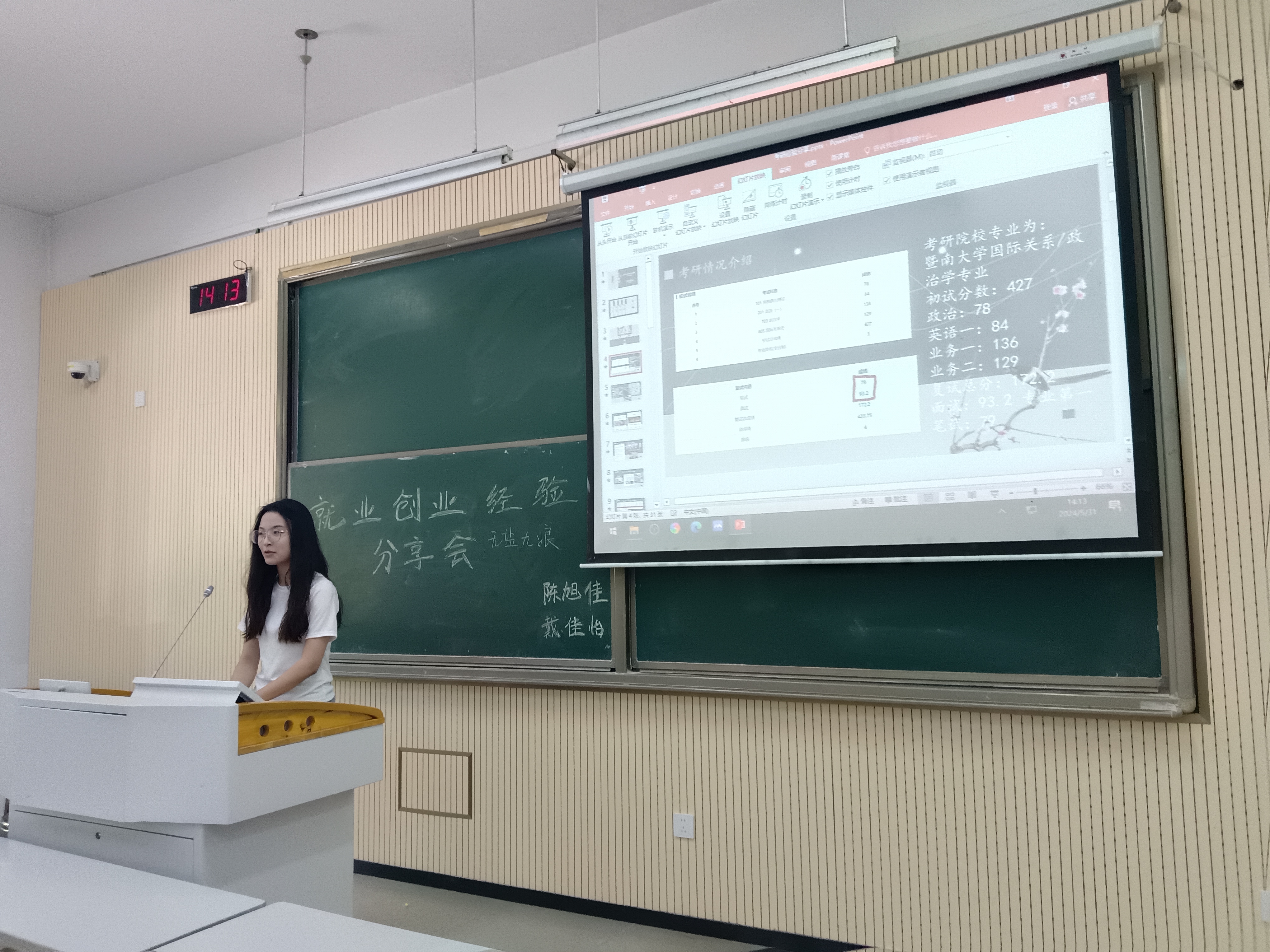2024年5月31日13:30,由南京审计大学老澳门六合彩 学生会主办的“就业创业经验分享会”于敏达楼108顺利开展。本次活动邀请了美妆博主陈旭佳学姐和考研上岸的戴佳怡学姐为大家分享相关经验。