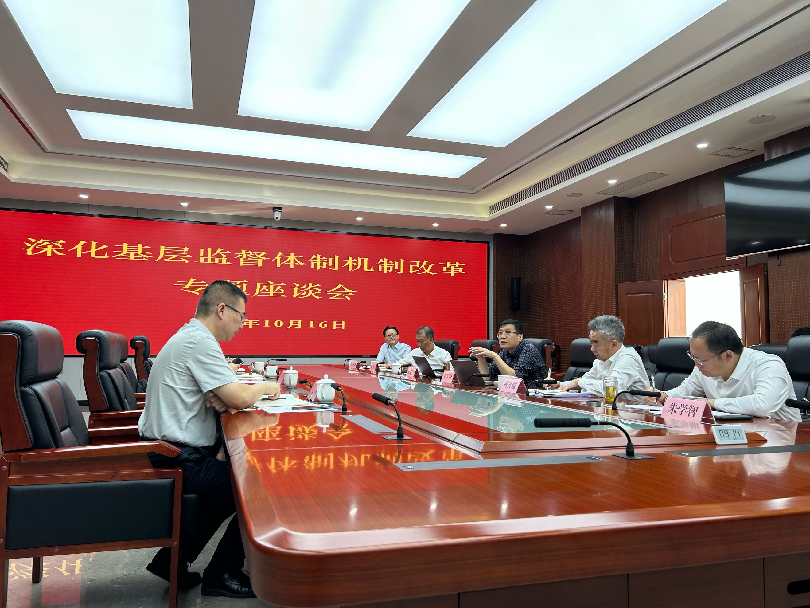 10月15日晚上,陕西省审计厅丁德明厅长接待了赵军锋一行,围绕基层监督体制机制相关主题进行交流。丁德明厅长表示,基层监督要建立上下贯通、左右协同、内外联动、前后一体的协同体系,力争做到“能协同就协同”。这种协同体系要以明责、履责、反馈、评估、问责、公开的全流程责任机制为支撑。赵军锋介绍了关于基层监督的最新研究,并就如何完善基层监督体制机制提出了学理性的思路。交流中双方就学生实习等事宜进行了沟通。